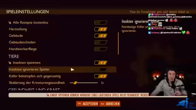 00:17:38Es wird eine gemeinsame Welt erstellt, um Roomtouren zu ermöglichen. Der Modus wird auf benutzerdefiniert eingestellt, um die Kämpfe anzupassen. Es gab Passwortprobleme beim Beitritt zum Spiel. Die Schwierigkeitseinstellungen werden diskutiert, einschließlich Gebäudeschaden, Insekten-Spawns und Friendly Fire. Es wird entschieden, Insekten nicht zu ignorieren, um den Loot zu erhalten und das Überleben zu gewährleisten. Der Essensverfall wird ausgeschaltet, um Grind zu vermeiden. Die Insekten ignorieren die Spieler nicht, um Kämpfe zu ermöglichen. Der Schwierigkeitsgrad wird auf flauschig gesetzt, um Cheating zu vermeiden. Die Charaktere werden ausgewählt und das Spiel gestartet. Es wird kurz über die Positionierung der Kamera und des Chats im Spiel gesprochen.