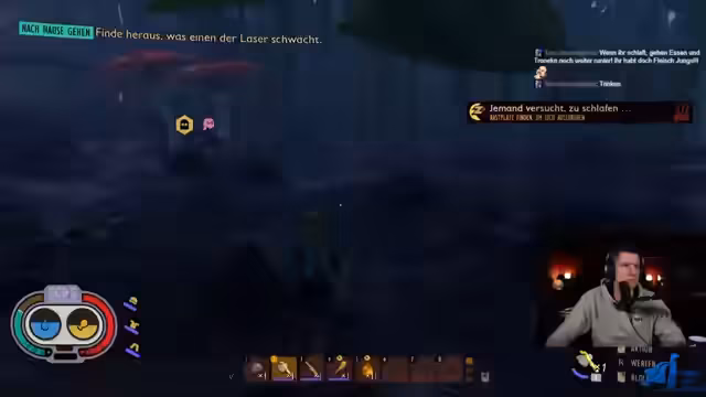 01:12:31Ein Spieler bezeichnet sich als "Panzer". Der Marienkäfer Hildegard wird gesichtet. Es wird festgestellt, dass keine Waffe in der Nebenhand ausgerüstet ist. Der Kieselchenspeer und Stachelsprössling werden als mögliche Waffenoptionen diskutiert. Distelstachel sind schwer zu finden. Ein blinkendes Objekt wird entdeckt und als Lasershow identifiziert. Das Ziel ist es, den Weg des Lasers freizumachen und herauszufinden, was ihn schwächt. Ein Speer wird benötigt. Der Kieselchenhammer wird erwähnt. Es wird diskutiert, wie man Gegenstände in die Nebenhand bekommt. Ein Schild wird als Option für die Nebenhand vorgeschlagen, möglicherweise ein Captain America Schild. Saft wird analysiert. Das Inventar wird umsortiert, wobei der Speer als wichtigstes Werkzeug eingestuft wird. Der Milbenwels wird erwähnt. Es werden neue Ideen wie eine ausgestopfte Milbe als Wanddeko und ein Felspelz entdeckt. Ein Felspelz-Smoothie wird als Stärketrank beschrieben.