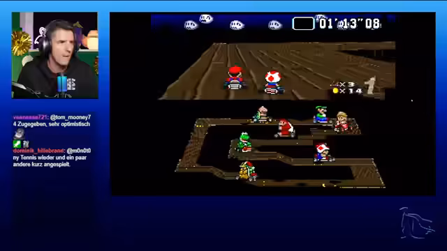 02:39:14Der Fokus verschiebt sich zu Mario Kart, wo technische Probleme mit dem Controller und der Speicherfunktion diskutiert werden. Trotz der Schwierigkeiten wird das Spiel mit Begeisterung gespielt, wobei der Streamer die charakteristischen Soundeffekte und die Nostalgie der alten CRT-Bildschirme hervorhebt. Es folgt ein intensives Gameplay mit Kommentaren zu den Strecken, der Steuerung und der Wettkampfdynamik, inklusive der Herausforderung, gegen die KI-Prinzessin anzutreten.