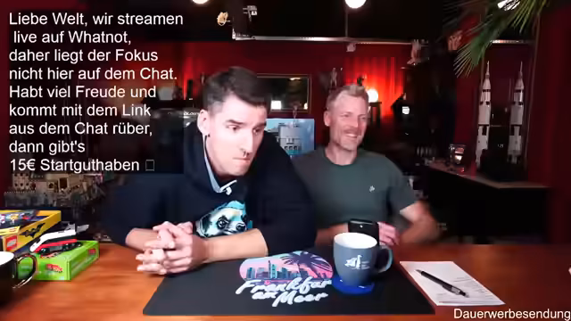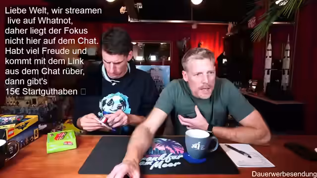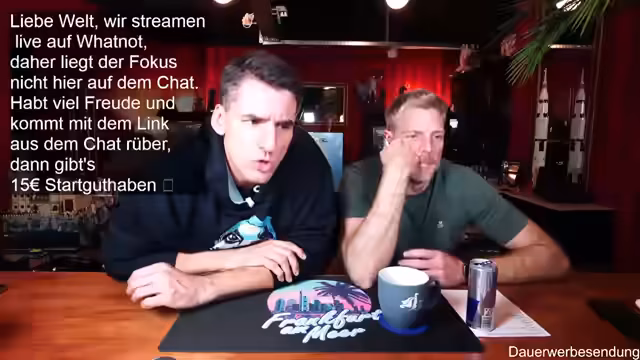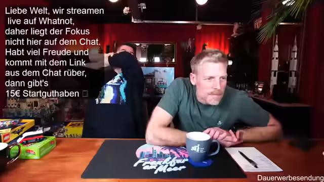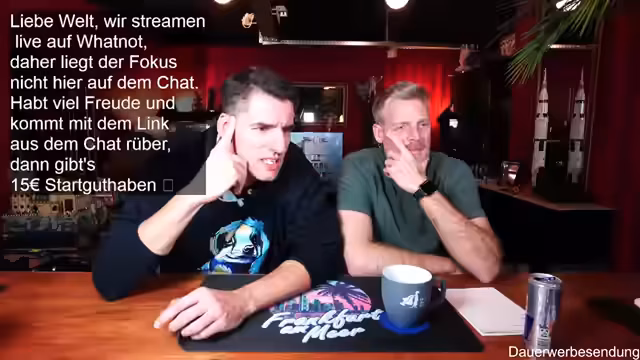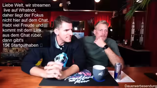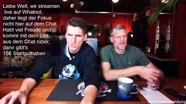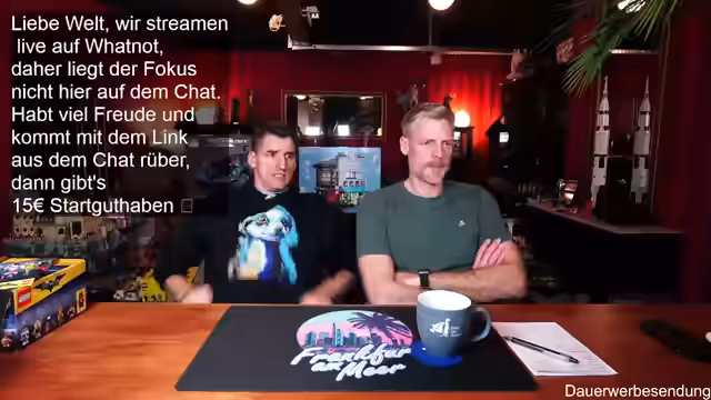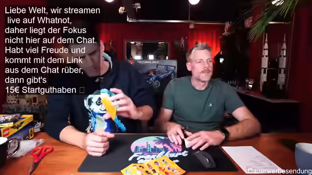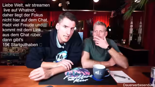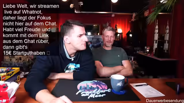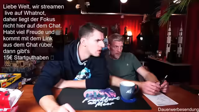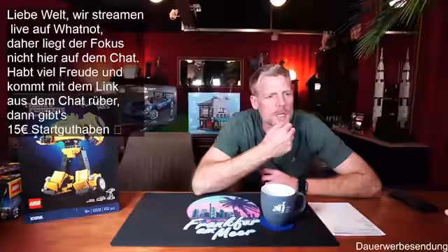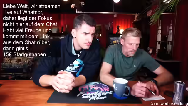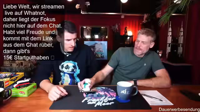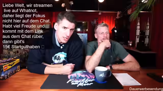 00:01:59Der Stream beginnt mit der Begrüßung der Zuschauer und des Co-Moderators Ben. Es wird auf die gute Bild- und Tonqualität hingewiesen und die Vorfreude auf die geplanten Aktivitäten des Abends geteilt. Ein Zuschauer befindet sich in Florida, was zu einem kurzen Austausch über das Wetter führt. Es wird erwähnt, dass erst ab Donnerstag besseres Wetter in Deutschland zu erwarten ist. Die Zuschauer werden ermutigt, sich aktiv im Chat zu beteiligen, wobei Thomas und andere namentlich begrüßt werden. Der Moderator präsentiert stolz seinen neuen Pullover, der noch etwas eingetragen werden muss, um perfekt zu sitzen. Es wird auf die Möglichkeit hingewiesen, über Twitch zum Whatnot-Stream zu wechseln, um von einem Startguthaben von 15 Euro für Neukunden zu profitieren. Der Link dazu wird im Twitch-Chat angeheftet und seine Funktionalität bestätigt.