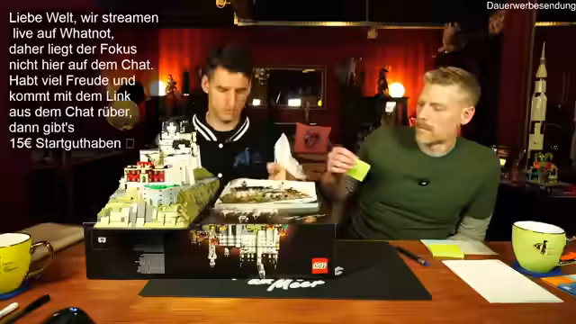 01:16:52Ein bedeutender Höhepunkt war die Versteigerung des Neuschwanstein Schlosses mit 7500 Teilen. Aufgrund seiner Größe und Fragilität bestand die Sorge, dass es unversehrt beim Käufer ankommt. Der Streamer demonstrierte den komplexen Aufbau und die voluminöse Verpackung, die erforderlich ist, um das Set zu schützen. Der Aufbau wurde auf 400 bis 500 Euro taxiert, der Startpreis für die Auktion lag bei etwa 40 Euro.