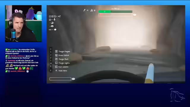 04:59:37Der Stream beginnt mit ungewöhnlichen Geräuschen und der Frage nach der Fahrspur. Es kommt zu einem Vorfall, bei dem ein Fahrzeug seitlich gegen ein Brett fährt. Der Fahrer hält die Spur für optimal, ist aber in eine feste Situation geraten und fragt den Chat nach der Position des Partners. Dieser gibt an, nicht heruntergefallen zu sein, und der Fahrer beschreibt die Situation. Er bittet um Hilfe, um aus der festen Lage zu kommen.