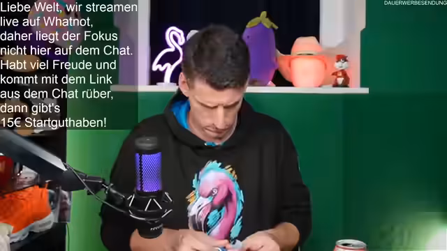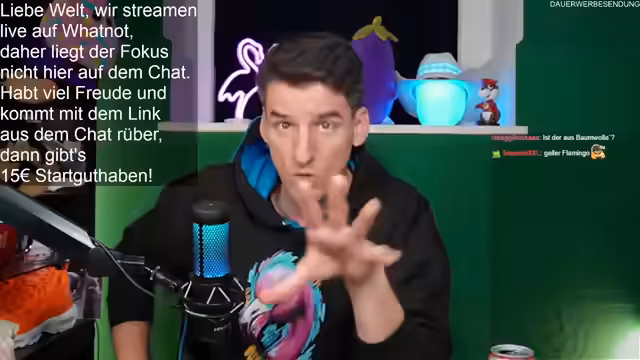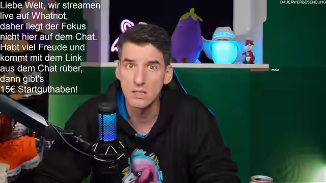 00:02:10Der Stream beginnt mit einer persönlichen Begrüßung der Community, die Toni, Dominik und andere Zuschauer namentlich anspricht. Es wird die Freude über das volle Haus und den reibungslosen Start des Events ausgedrückt. Der Streamer ist mit Snacks und Getränk vorbereitet und kündigt an, parallel einen WhatNot-Stream laufen zu lassen, wo Simon den Laden schließt. Er betont die Wichtigkeit der Benachrichtigungsfunktion für Twitch, um als Streamer rechtzeitig gewarnt zu werden.