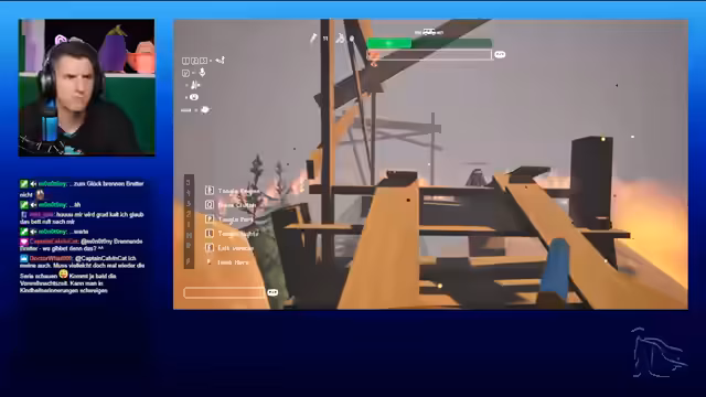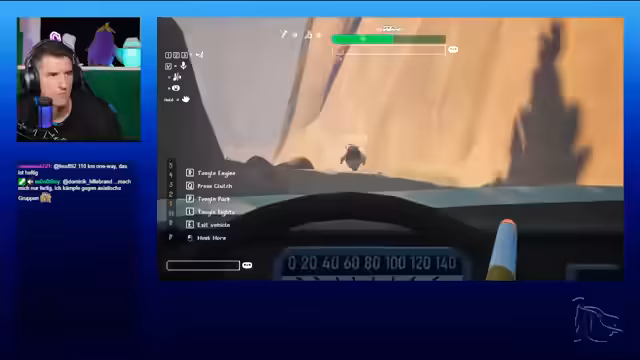 04:08:41Die Spieler stoßen auf eine Jump'n'Run-Herausforderung, die sich als unerwartet schwierig erweist. Nach mehreren gescheiterten Versuchen und einem virtuellen Tod, bei dem ein Spieler ein rohes Fleisch-Patty gegessen hat, müssen sie sich gegenseitig wiederbeleben und neue Strategien entwickeln. Sie versuchen, das Fahrzeug zu reparieren, um die Sprünge zu überleben, stellen aber fest, dass selbst mit Reparaturen die Herausforderung extrem ist. Die Frustration wächst, als sie immer wieder scheitern und feststellen, dass sie mehr Schrottmetall benötigen, um das Fahrzeug ausreichend zu verstärken. Trotz der Rückschläge bleiben sie entschlossen, die Passage zu meistern.
