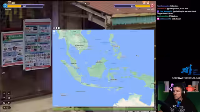 02:20:05Ein schnelles Geoguessr-Spiel beginnt, bei dem es darum geht, Orte auf der Weltkarte zu erraten. Es wird über die Standorte diskutiert, darunter Brasilien, die Türkei, Spanien, Mexiko, Peru, Afrika und Australien. Der Chat hilft mit Tipps und Hinweisen, um die richtigen Orte zu finden. Es kommt zu einer Eskalation von Spenden und Abonnements, insbesondere durch den User Ehrenbart, der mehrfach Abonnements verschenkt. Trotz der Unterstützung des Chats und einiger guter Tipps, werden einige Orte falsch geraten, was zu Punktverlusten führt. Es wird festgestellt, dass einige Gegner sehr schnell tippen und möglicherweise raten, anstatt die Umgebung zu analysieren. Die Atmosphäre ist hektisch und aufgeregt, da die Spieler unter Zeitdruck stehen und versuchen, die besten Tipps abzugeben.