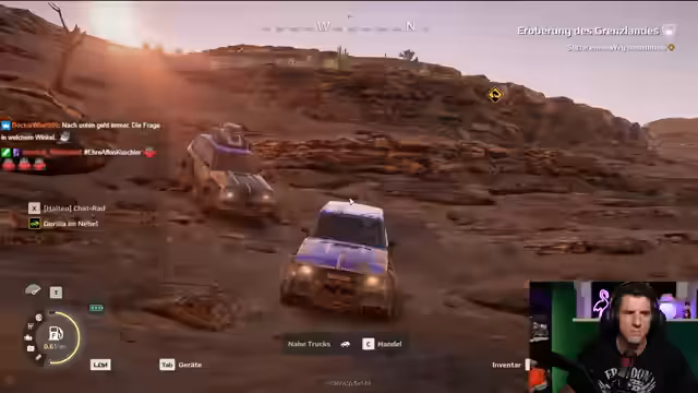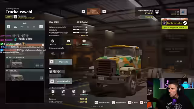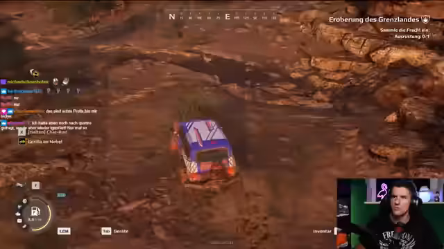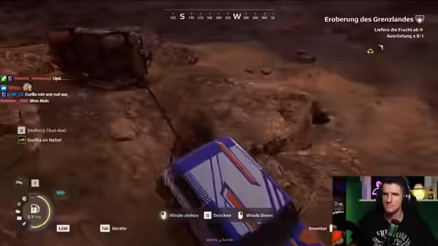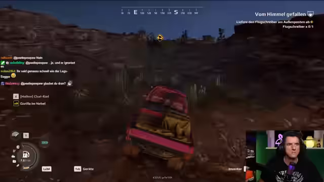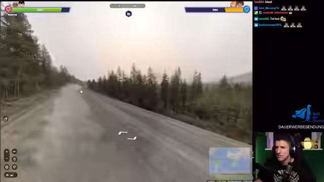 01:01:01Der Chat gibt den Hinweis, zuerst den Allradantrieb und dann die Differenzialsperre zu aktivieren, was jedoch nicht funktioniert. Sie müssen umdrehen und zurück zur Basis fahren. Der Streamer startet eine Drohne, um sich einen Überblick zu verschaffen. Sie stellen fest, dass sie durch einen bestimmten Bereich müssen. Der Streamer lässt seine Drohne zum Partner fliegen. Der Chat lobt die Professionalität des Streams, und der Streamer vermutet, dass die Mods vor Begeisterung gelobt werden. Trotz Allradantrieb gibt es Schwierigkeiten, einen bestimmten Punkt zu erreichen, aber mit der Hilfe des Partners gelingt es schließlich.