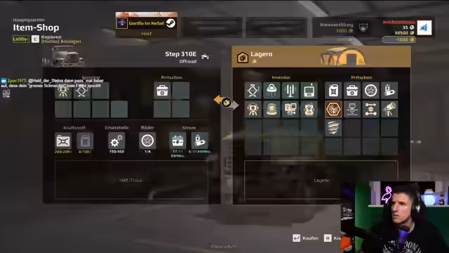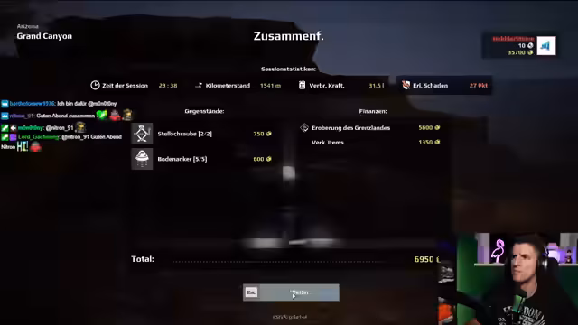 00:34:54Nach anfänglichen Schwierigkeiten beim Beitritt zum Spiel wird festgestellt, dass Crossplay deaktiviert ist, was jedoch kein Problem darstellt, da beide über Steam spielen. Die Karte 'Little Colorado' wird als Tutorial-Karte verworfen, und stattdessen wird 'Arizona' für ein größeres Abenteuer ausgewählt. Es gibt Probleme mit den Anforderungen für den Truck, insbesondere Bodenanker und Stellschraube. Der Streamer kauft die benötigten Teile und passt seinen Truck an. Es treten technische Schwierigkeiten mit einem Steam-Overlay auf, das die Sicht behindert, aber durch einen Tipp aus dem Chat kann das Discord-Overlay deaktiviert werden. Nach der Lösung der technischen Probleme kann das Spiel endlich gestartet werden.