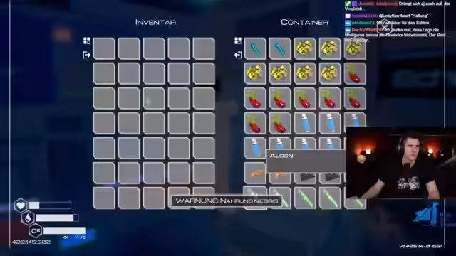 01:12:48Ein Zuschauer wird für eine Lindt-Weihnachtsschokolade gedankt, die als willkommene Überraschung empfunden wird. Es wird versucht, die Adresse des Zuschauers diskret auszublenden. Das Inventar wird geleert und Kobalt in einer speziellen Kiste namens "Schmobald" verstaut. Die Frage, ob ein automatisches Lagersystem existiert, wird aufgeworfen, was durch die Information über zukünftige Drohnen für den Materialtransport positiv beantwortet wird. Nach dem Entladen des Fahrzeugs soll der Luftfilter gebaut werden, wofür Superlegierung, Silizium und Iridium benötigt werden. Das Fahrzeug soll aufgerüstet werden, was Magnetarquartz erfordert. Die Spieler planen, den Westen zu erkunden, nachdem die aktuelle Ladung in der Basis verstaut wurde. Es wird ein weiterer Schrank für "Schmeißen" benötigt. Die Unzufriedenheit mit der aktuellen Lagerorganisation wird geäußert, und die Hoffnung auf eine automatische Sortierung wird betont. Die Performance des Streams wird positiv bewertet. Der Transport der Larven wird thematisiert und das Ziel, den Nordwesten zu erobern, wird bekräftigt. Die Larven werden liebevoll als "Larvenbabys" bezeichnet. Es wird festgestellt, dass die Schränke bereits leer sind, was die Notwendigkeit weiterer Aktionen in Frage stellt. Eine Truhe wird entdeckt, die Superlegierung und Kürbiskerne enthält. Ein Einhorn-Horn wird gefunden und humorvoll kommentiert. Eine goldene Truhe wird übersehen und die Frage aufgeworfen, ob diese wieder spawnen. Superlegierung wird benötigt. Es wird nach Silizium und Eisen gesucht, um das Lager zu organisieren. Die Leiterplatten werden als ungelöstes Problem betrachtet. Die Spieler stellen fest, dass Meteoriteneinschläge stattfinden und beschließen, Taschen zu leeren und die heruntergefallenen Gegenstände einzusammeln.