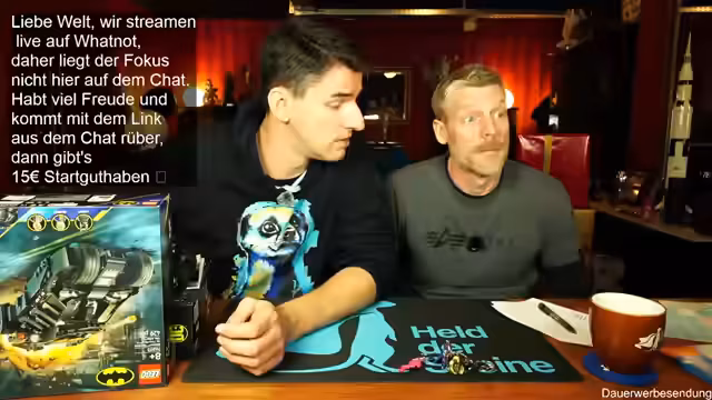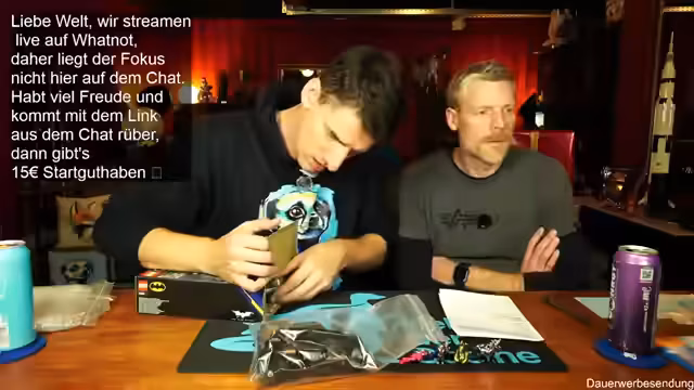 01:54:40Ein schneller Flash Sale wird für eine Lego Batman-Figur gestartet, die in einem Boosterset für nur 3,20 Euro verkauft wird. Der Streamer zielt damit auf 'schnelle Käufer' ab, die noch kurz eine günstige Figur ergattern wollen, um sich für die Giveaways zu qualifizieren. Die Aktion läuft nur wenige Sekunden, um ein Gefühl von Exklusivität und Eile zu erzeugen. Der Gewinner wird sofort bekannt gegeben und gratuliert.
