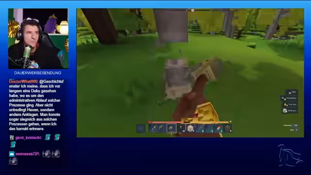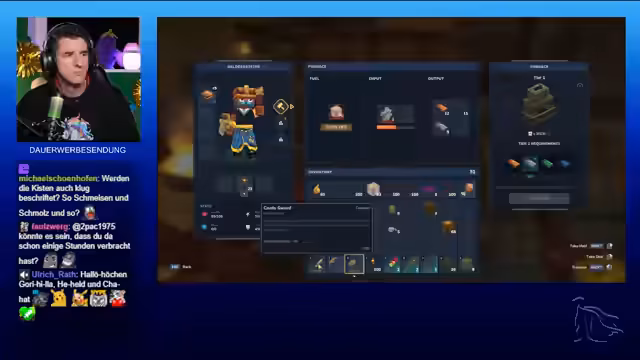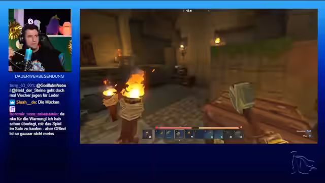 03:45:05Um an bessere Rüstungen zu gelangen, beschließen die Streamer, Leder durch das Jagen von Kleinvieh wie Rehen und Hasen zu farmen. Parallel dazu fassen sie den Plan, Bronze- und Eisendecker zu craften. Ein einhändiges Schwert wird als Hauptwaffe beibehalten und zusätzlich ein Kupferschild getragen, um gegen Gegner besser bestehen zu können.