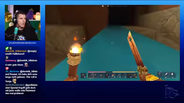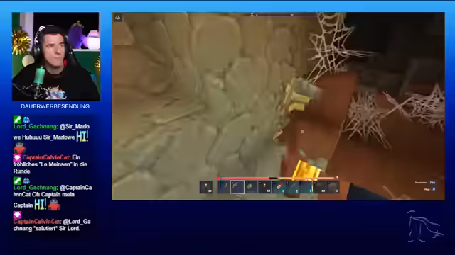 02:36:29Der Stream beginnt mit der Erkundung einer Höhle, in der sofort nach dem Eingang die ersten Ressourcen abgebaut werden. Neben dem Nötigsten wie Werkzeugen und Fackeln werden schnell die ersten Kupfer- und Eisenerze gesammelt. Dabei werden erste strategische Überlegungen angestellt, wie die Fackeln zur Orientierung platziert werden, und die Kreaturen wie Ratten als erste Gegner vorgestellt. Der erste erfolgreichte Abbau von Kupfer, das als Basis für die erste Rüstung dient, wird als erster großer Erfolg gefeiert.