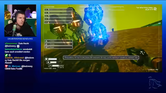 04:07:31Während der Erkundung beginnen bei den Streamern vermehrt Serververbindungsprobleme und instabiles Verhalten. Auch der Versuch, wieder zur Basis zurückzukehren, scheitert durch einen Disconnect. Nach mehreren Neustarts der Server und des Spiels entscheiden sie sich, das Spiel zu wechseln und starten Planet Crafter auf einem anderen Server.