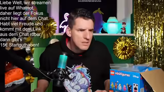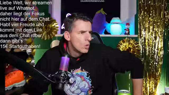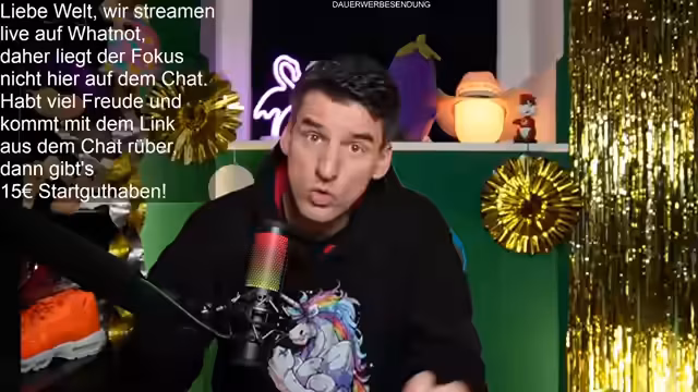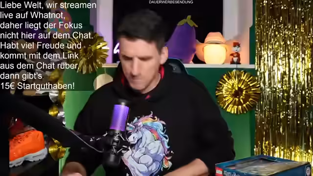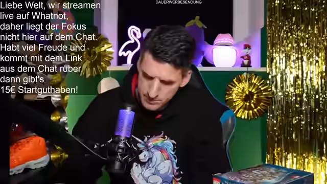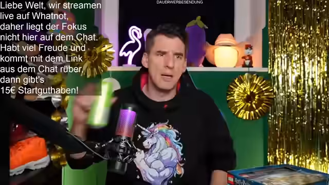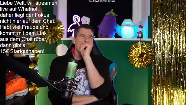 00:04:29Der Stream beginnt mit der Begrüßung der Zuschauer und der Überprüfung der technischen Einrichtung. Der Streamer testet Ton und Bild auf beiden Plattformen, Twitch und Whatnot, stellt sicher, dass alles einwandfrei funktioniert, und erwähnt die Aktivität des Bots. Die Vorbereitungen laufen reibungslos ab, sodass der Start des Live-Streams für Whatnot in 8 Sekunden angekündigt wird. Parallel dazu werden die bereits im Chat sichtbaren Zuschauer begrüßt.