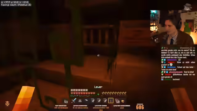 04:02:38Der Streamer findet sich in einem Wald wieder und muss ein Rätsel lösen. Die Hinweise sind kryptisch und beziehen sich auf Dinge, die er nicht gehört hat, und geheime Pläne. Er wird gewarnt, dass er in Gefahr ist, wenn er nicht die richtigen Schritte unternimmt. Er muss gezielt abbauen und Hebel betätigen, um eine Tür zu öffnen und einen versteckten Hebel zu finden, der zur Lösung des ersten Rätsels führt.