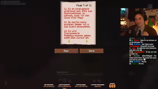 00:39:13Der Streamer betritt sein Haus im Minecraft-Server und interagiert mit anderen Spielern. Er erfährt von einem geplanten Weihnachtsgeschenk, das aufgrund von Lieferproblemen nicht ankam. Stattdessen erhält er ein Pferd. Ein anderer Charakter namens Nico spricht ihn auf ein Problem mit einem "Pablo" an und übergibt ihm einen Brief. Der Streamer liest den Brief, der besagt, dass es nie Lieferprobleme gab, sondern Pablo entführt wurde und seine Hilfe benötigt. Der Brief enthält Anweisungen, wie er Pablo befreien kann. Es gibt auch Spielregeln, die er beachten muss, wie das Ablegen aller Artefakte. Der Streamer legt seine Ausrüstung ab und bereitet sich auf die Rettungsmission vor. Er hat Probleme mit der Installation einer Mod namens Mini Hut und erhält Hilfe von einem Zuschauer im Chat. Nach anfänglichen Schwierigkeiten gelingt es ihm, die Mod zu installieren und die Einstellungen anzupassen. Er bedankt sich bei den Helfern und bereitet sich darauf vor, die Rettungsmission zu beginnen.
