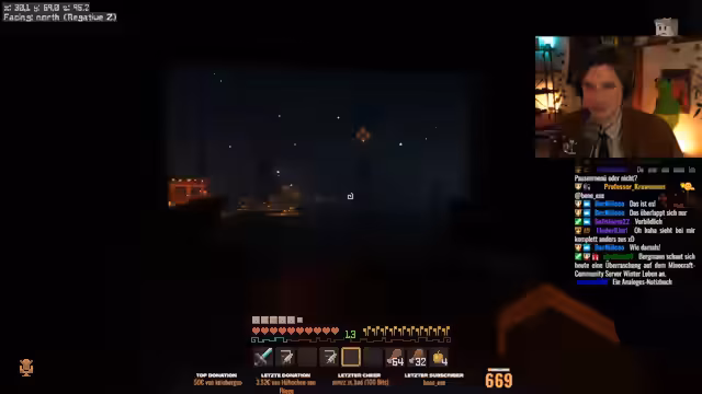 02:32:10Nach einem technischen Problem durchläuft der Streamer eine Diagnose und identifiziert sich als Nummer 6, ein Testroboter aus einem nuklearen Labor. In einer Gefängniszelle trifft er auf Jule und Sophie. Während er versucht, sich zu befreien, findet er Bücher mit Fragen und Antworten, die sich auf das Minecraft-Projekt 'Minecraft Leben' beziehen, wie den Baumeister Lord Zombie und den Begleiter 'Der Burner'.