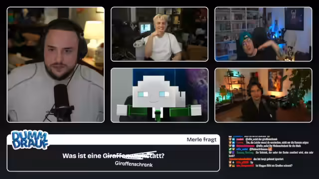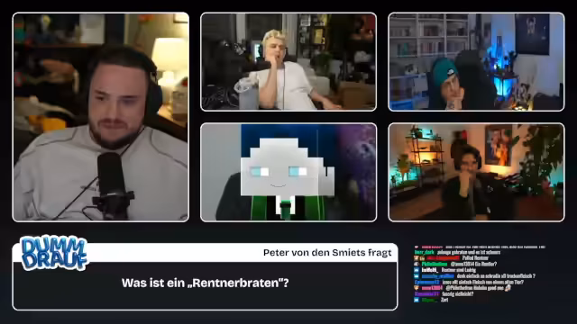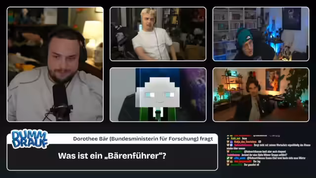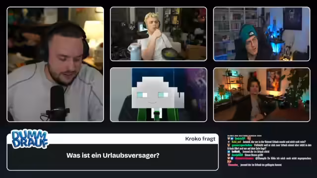 Die mit Spannung erwartete „DUMM DRAUF QUIZSHOW“ steht bevor. Das Format, das von und mit Papaplatte entwickelt wurde, orientiert sich an der bekannten Sendung „Genial daneben“. Reeze übernimmt die Moderation, während BastiGHG, Papaplatte, Niek und ein weiterer Teilnehmer als Team antreten. Es handelt sich um ein gemeinsames Spiel, bei dem kreative Antworten auf skurrile Fragen gefunden werden müssen.