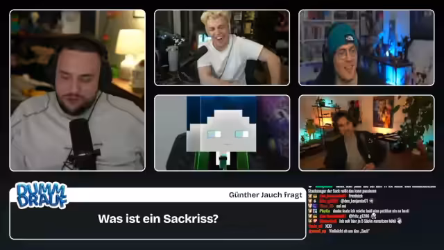 01:14:29Dominik eröffnet die dritte Folge der Quizshow „Dumm drauf“ und begrüßt die fantastischen Gäste Kevin, Niek, Basti und Herr Bergmann als Joker-Kandidat. Er erklärt das Format: Die Community hat Fragen zu speziellen Begriffen eingereicht, die die Teilnehmer erraten müssen, wobei kreatives und um die Ecke denken gefragt ist. Dominik betont, dass die Fragen diesmal besonders spannend sind. Die erste Frage lautet: „Was ist ein Sackriss?“ Niek beginnt mit einer humorvollen, aber falschen Erklärung, die sich auf einen gerissenen Sack als Körperteil bezieht. Herr Bergmann versucht es mit einer historischen Erklärung aus dem Hamburg der 60er Jahre, bei der es um Deichsäcke geht, die reißen. Kevin schlägt vor, dass es sich um einen gerissenen Staubsaugerbeutel handeln könnte, was ebenfalls falsch ist. Dominik gibt den ersten Tipp: Es handelt sich nicht um einen tatsächlichen Sack, sondern um einen Riss, und die Antwort liegt im Handwerk.