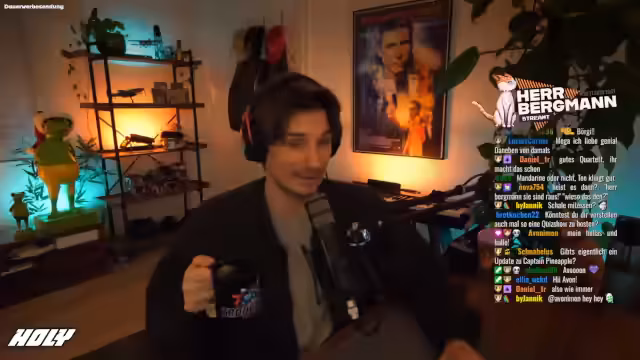 01:10:35Die Diskussion beginnt mit einer Frage an Mr. Mountain, warum er nichts mehr sagt, und geht dann schnell zu technischen Details über Bergmanns Setup über. Ein Zuschauer fragt nach der Beleuchtung seines Setups, woraufhin Bergmann erklärt, dass er Philips Hue Lampen verwendet. Kevin bietet an, dass Bergmann ihm bei der Einrichtung helfen soll, was dieser gerne annimmt. Es gibt kurzzeitig Probleme mit der Flüssigkeit des Streams, wobei Bergmann und Basti feststellen, dass es bei ihnen selbst flüssig läuft, aber bei anderen womöglich nicht. Basti startet seinen Browser neu, um das Problem zu beheben, während er sich über seinen warmen Stuhl wundert. Die Teilnehmer scherzen über die Bildqualität, die an einen Zoom-Meeting-Filter oder Skyfall 2009 erinnert, und überlegen, ob ein VHS-Filter helfen könnte. Schließlich wird geklärt, dass Basti im Kader ist und der Stream starten kann.