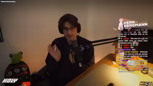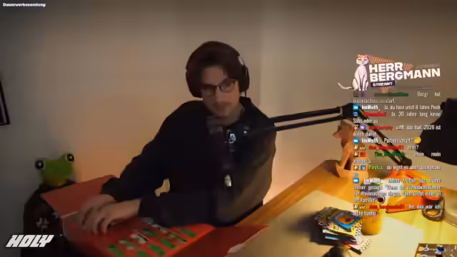 00:09:29Der Streamer präsentiert sein umgestaltetes Streaming-Zimmer und erklärt die Umzugsgründe. Nach einem Umzug aus Felix' Gartenlaube into eine Nachbarvilla mit Renovierungsbedarf, hat er sich für ein gemütlicheres, funktionaleres Setup entschieden. Er plant Holzpaneele, Regale für Dekoration wie Lego-Modelle oder Schallplatten sowie eine beruhigtere Ästhetik ohne unruhige Poster. Ziel ist ein ausgewogeneres Raumgefühl, das sowohl praktisch als auch wohlig wirkt – abweichend von früheren, kameraoptimierten Arrangements. Aktuell befindet sich der Stream in einer Übergangsphase mit provisorischer 'Höhlen-Atmosphäre'.