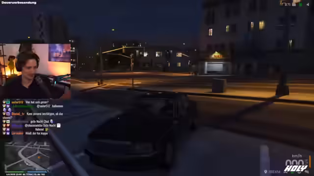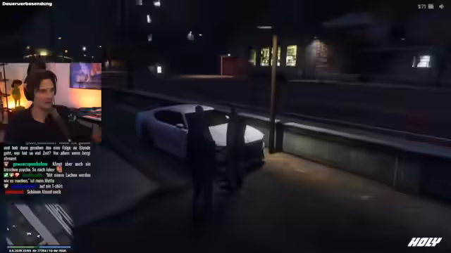 01:34:11Nach einem kurzen, ungewöhnlich ruhigen Gespräch in der Küche beginnt der Stream offiziell. Der Streamer begrüßt die Zuschauer und erwähnt einen früheren Raid von 'Raiders of the Lost Ark'. Er gibt einen Einblick in seine aktuelle Situation: er hat gerade einen Gefängnisaufenthalt hinter sich und sein Taxifahrerleben geht weiter. Der 'Nagelbandkiller' ist weiterhin unbekannt.