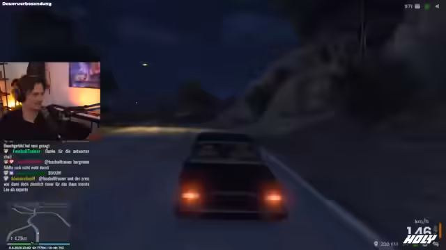 05:17:13Während einer Taxifahrt offenbart der Fahrgast, dass er keinen Pkw-Führerschein besitzt, aber den nächsten Tag den Erste-Hilfe-Kurs machen möchte. Der Streamer, der sich als Ausbilder bei der Fahrschule ausgibt, erläutert die Regeln: Mit einer Visumstufe von 5 ist ein Führerschein ohne Erste-Hilfe-Kurs theoretisch möglich, nicht jedoch ab Stufe 6. Der Fahrgast möchte daraufhin die Möglichkeit prüfen, am Folgetag den Führerschein zu machen, sofern seine Visumstufe dies zulässt.