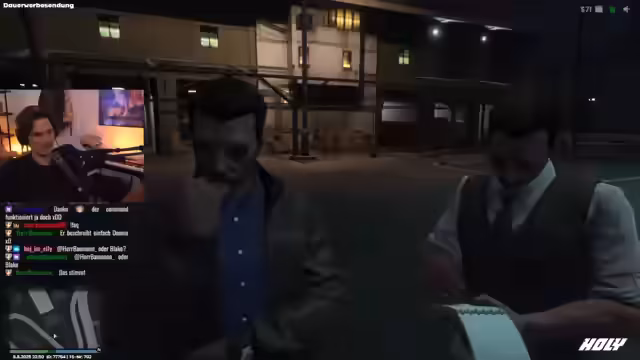 00:25:19Die Konversation zwischen dem Streamer und seinen Gang-Mitgliedern dreht sich um jüngste Probleme mit einem anderen Gang-Mitglied, das sich unangemessen verhalten hat. Der Streamer als Anführer der Gang verurteilt dieses Verhalten gegenüber Unbeteiligten und betont die internen Regeln. Die Situation eskaliert, als der Verdacht auf Mike fällt, da dieser den Vorfall mit den Nagelbändern vom Vortag nicht rechtzeitig gemeldet hat und auffällig erscheint. Der Streamer ordnet an, Mike zu verhören.