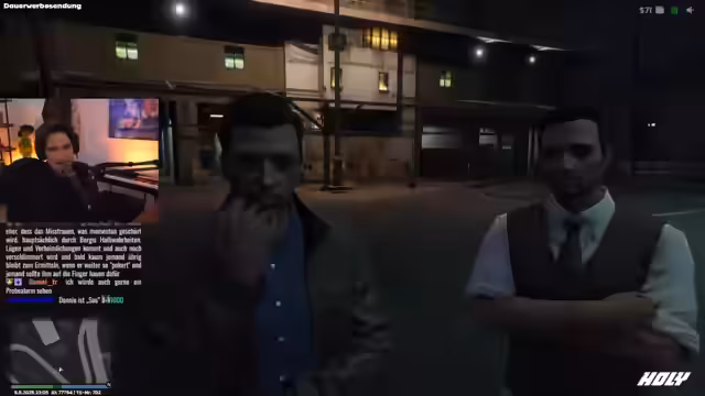 07:19:56Der Streamer erwähnt seine neue, offizielle Partnerschaft mit der Plattform GVMP und erkundigt sich nach den damit verbundenen Vorteilen. Er erfährt, dass Partner Zugang zu speziellen Streamer-Fahrzeugen wie dem JB700, einer exklusiven Second-Life-Lizenz und einem zusätzlichen RP-Character erhalten können. Dieses Gespräch unterstreicht die Bedeutung von Partnerschaften für Streamer in diesem virtuellen Umfeld.