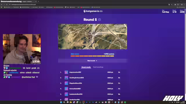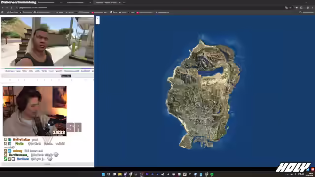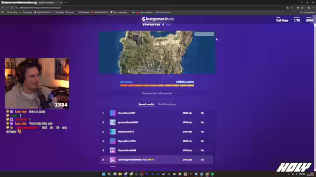 01:33:27Der Streamer startet GTA GeoGuessr alleine und erkennt sofort den Mirror Park, wo er in einer GTA-Folge eine Karre abgeknallt hat. Er erinnert sich an das Praktikum bei den Weasel News und die Garage mit seinen Karren. Er analysiert die Umgebung und versucht, die genaue Position zu bestimmen. Zuschauer geben Tipps für den Multiplayer-Modus auf Old.lostgamer.io. Der Streamer versucht, eine Lobby zu erstellen und lädt Zuschauer ein, beizutreten. Es wird überlegt, ob es nicht so schnell geht, dass jetzt hier 60 Leute mitspielen. Das Last Game. Ja, ja, okay. Das ist, glaube ich, einfach nur der Highscore hier. Kommt irgendjemand rein? Ich bin Shameful Pair. Okay. Dann warte ich noch 10 Sekunden und dann geht's gleich los.