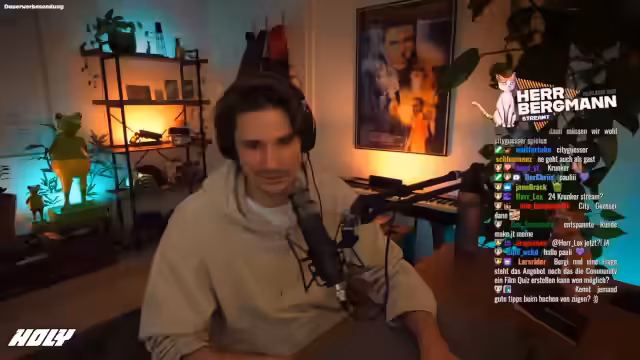 00:21:30Um 1290 Minuten spricht der Streamer über seine langfristigen Pläne. Er möchte bis Jahresende die Wirtschaftlichkeit des Streams bewerten und danach möglicherweise mehr Aufgaben wie den Schnitt von Clips oder ein monatliches Best-of-Video an externe Kräfte abgeben. Eine konkrete neue Idee ist die Produktion eines eigenen Hörspiels oder Hörbuchs, an dem er arbeiten möchte, da er Spaß an Vertonung und Sounddesign hat. Dies könnte durch die Zusammenarbeit mit anderen Machern wie Michi realisiert werden.