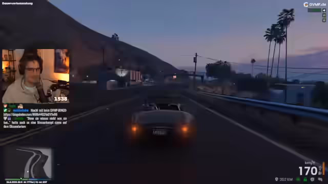 Es wurde ein alternativer GeoGuessr-Modus für GTA V gespielt. Ziel waren gemeinsame Runden mit der Community. Ein Fokus lag auf der Erkennung von Locations aus der Rollenspielgeschichte. Nach den intensiven Runden ging es nahtlos in eine angekündigte, entspannte Taxischicht über.