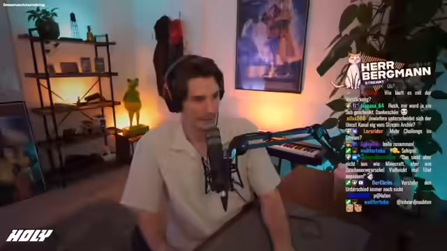 00:05:14Der Streamer begrüßt das Publikum und gibt eine erste Einschätzung des aktuellen Chats, in dem er hauptsächlich Twitch-Sub-Badges wahrnimmt. Er dankt allen Zuschauern für ihren Support und begrüßt einzelne namentlich genannte Personen, darunter Milchreis und Grießbrei. Nach einer kurzen, humorvollen Abhandlung über Vorlieben bei Speisen wie Grießbrei oder Rosenkohl, stellt der Streamer den thematischen Schwerpunkt des Abends vor: die Fortführung der Fotosafari, einem Minecraft-Abenteuer, bei dem es zuvor zu einer folgenschweren Begegnung mit aggressiven Monstern gekommen ist.
