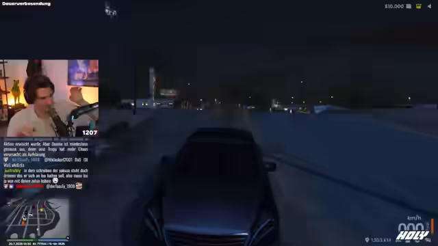06:35:50Kurz nach dem Treffen mit Luna und auf dem Weg zum Rendezvous-Punkt, ereignet sich ein dramatischer Vorfall. Ein silberner Sportwagen mit blauer Untergrundbeleuchtung überholt den Streamer und schießt ohne Vorwarnung auf sein Fahrzeug. Die Reifen platzen, was zu einem Unfall führt. Der Fahrer des Angreifer-Fahrzeugs taucht wieder auf und feuert erneut auf das beschädigte Auto, bevor er verschwindet. Der Streamer, der eine schusssichere Weste trägt, bleibt verletzt, seine Crewmitglieder reagieren alarmiert.
