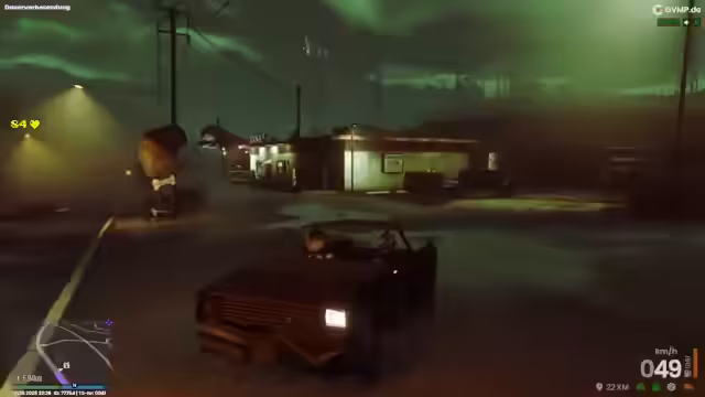 07:46:24Die Gruppe stimmt zu, ins Krankenhaus in Sandy Shores zu fahren, um die benötigten Blutproben zu entnehmen. Sie werden angewiesen, dem FIB-Fahrzeug zu folgen, um besser im Blick zu bleiben. Unterwegs bemerkt der Fahrer, dass sie die Verfolger abhängen könnten, indem er schnell fährt und dann plötzlich vom Gas geht. Dies gelingt, und sie entkommen dem FIB vorübergehend. Während der Fahrt wird erwähnt, dass es immer noch eine Bombe in Paleto gibt und die Chefin von McGill Constructions, die ebenfalls im Roleplay ist, nach dem Antivirus in Tylers Körper sucht. Die Stadt ist voller Zombies, was die Situation zusätzlich erschwert und für Unbehagen sorgt.