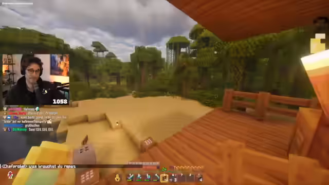 01:43:17Trotz der anfänglichen Schwierigkeiten macht der Bau des Filmstudios Fortschritte. Zwei kleinere Projekte, die Rettung eines Pferdes und das Craften eines Zauns, werden erfolgreich abgeschlossen. Die Community diskutiert weiterhin über mögliche Filmkulissen und -szenen. Vorschläge wie die Nachstellung von Szenen aus Forrest Gump, insbesondere die bekannte Pralinen-Szene, werden gemacht. Auch die Idee, eigene kleine Dramen oder Schultheaterstücke zu verfilmen, wird in den Raum gestellt. Die Möglichkeit, mit Greenscreens zu arbeiten, um aufwendige Effekte und Hintergründe zu erzeugen, wird erneut betont, um die Umsetzung komplexer Szenen zu erleichtern und die kreativen Möglichkeiten zu erweitern.