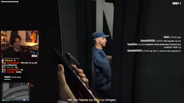 00:44:16Während einer Autofahrt durch Los Santos tauschen sich die Streamer über ihre liebsten Weihnachtstraditionen aus. Zero nennt das Schauen von Weihnachtsfilmen, Sascha das gemeinsame Essen und Trinken vor dem eigentlichen Weihnachtsabend, und der Streamer selbst bevorzugt Braten mit Klößen und Rotkohl. Die Diskussion über Kartoffelsalat und Würstchen als Weihnachtsessen sorgt für Heiterkeit. Die Mission wird durch glitchende Fahrzeuge und unkontrollierte Fahrweise erschwert. Nach einem heftigen Unfall erhält das Team eine SMS von Lester mit einem Bild einer Tasche, die sie bergen müssen. Dies führt zu einer chaotischen Verfolgungsjagd mit vier Sternen, bei der sie versuchen, in einer U-Bahn zu entkommen. Max' impulsive Aktionen und die allgemeine Unordnung prägen die Mission, während sie versuchen, den Verfolgern zu entkommen und die Tasche zu sichern.