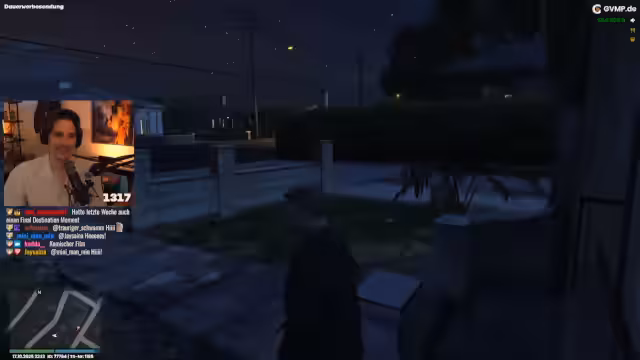 03:09:25Die Übergabe des Koffers ist erfolgreich abgeschlossen, der Streamer ist erleichtert, die riskante Mission hinter sich zu haben. Der Auftrag endet mit dem Abgang des Arztes. In der Zwischenzeit wird der Streamer von seinem Chat darauf aufmerksam gemacht, dass sein Fahrzeug nicht mehr verfolgt wird. Er nutzt die Pause, um sich bei seinen Followern und Sub-Giftern zu bedanken, was die Mission finanziell abfedert und eine positive Stimmung im Stream erzeugt.