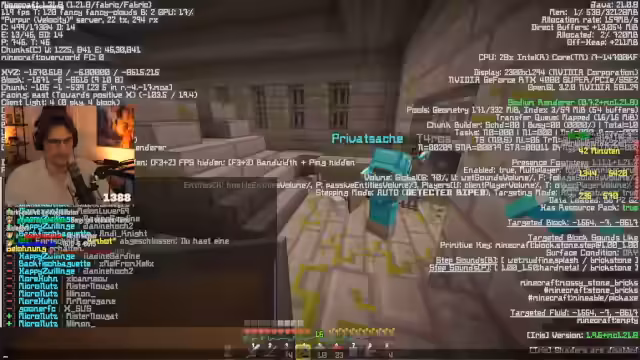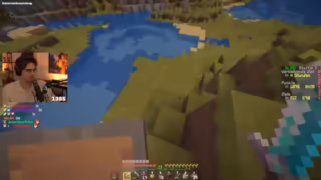 00:19:01Der Streamer und Sascha arbeiten eng zusammen, um die Aufgaben effizient zu erledigen. Sie tauschen sich ständig über den Stand der Dinge aus und planen den nächsten Schritt. Nach dem Nether wird ein Dorf aufgesucht, um Ressourcen wie Brot und Werkbänke zu looten. Besonders der Fund großer Mengen an Brot und Eisen wird als großer Erfolg gewertet, was die Nahrungsmittelversorgung sichert.