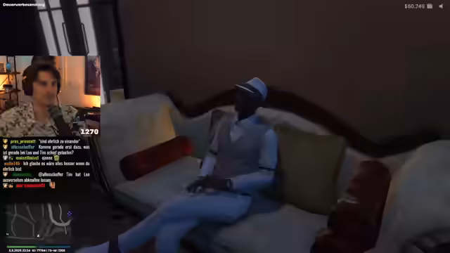03:02:58Nach der intensiven emotionalen Interaktion kehrt der Streamer ins allgemeine Gameplay zurück. Er erhält einen Anruf von Tyler, der ebenfalls im Spiel ist. Während des Gesprächs erfahren beide von Leo, dass es ihm nach den Vorkommnissen wieder besser geht. Der Streamer plant, sich später mit Leo nochmal am Strand zu treffen, um den Abend in Ruhe ausklingen zu lassen.
