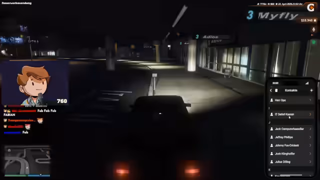 00:11:41Um 20 Uhr steht der Wechsel in GTA RP an. Dort werden Tyler Haros und Zero O'Neill erwartet. Zero wird für zwei Wochen in den Urlaub geschickt und die Streamer planen, ihn feierlich zum Flughafen zu bringen. Zero wird möglicherweise verraten, wie er während seiner Abwesenheit ersetzt werden kann. SmileyX16 wird im Chat erwähnt und es gibt Diskussionen über mögliche Charaktere und Running Gags.
