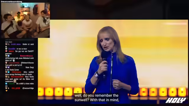 00:02:43Der gesamte Verlauf des Streams ist von technischen Problemen geprägt, wie etwa Soundaussetzern und Rückkopplungen. Nebenbei muss der Streamer Live-Regieaufgaben übernehmen, die Bildgröße anpassen und auf die technische Situation reagieren. Dieses Chaos wird jedoch als sympathisch und authentisch wahrgenommen und schafft eine besondere, ungeplante Dynamik zwischen den Streamern und den Zuschauern.