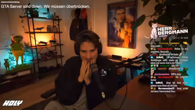 00:39:35Der Streamer berichtet von technischen Problemen und einem Serverausfall bei GVMP, kurz nachdem das GTA Roleplay-Event „Wenn ich du wäre...“ beginnen sollte. Tyler/Taros hatte den Streamer gebeten, pünktlich um 20 Uhr zu erscheinen, da er sonst immer eine halbe Stunde mit den Zuschauern redet. Trotz einer leichten Verspätung von acht Minuten kommt es zu einem Server-Crash, der das geplante Event unterbricht. Es wird spekuliert, ob der Server aufgrund einer kritischen Äußerung des Streamers zum neuen GVMP-Overlay abgestürzt ist. Im Discord-Chat wird bestätigt, dass der Server tatsächlich down ist und die Probleme untersucht werden. Dies führt zu einer ungeplanten Pause und der Suche nach alternativen Beschäftigungen, während auf die Wiederherstellung des Servers gewartet wird.