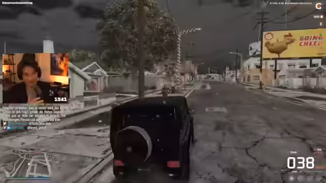 03:17:11Der Streamer schlägt Zero vor, zu einer Gang zu fahren, um mit seinem Auto anzugeben, oder alternativ im Attenburger Restaurant für Aufsehen zu sorgen. Tyler soll ins Restaurant gehen und lautstark die Autos draußen als 'Dreckskarren' bezeichnen. Er soll die Leute auffordern, herauszukommen, um ein 'richtig gutes Auto' zu sehen. Der Streamer plant, sich selbst ins Restaurant zu setzen, um die Reaktion zu beobachten. Tyler führt die Anweisung aus, betritt das Restaurant und beschimpft die draußen parkenden Fahrzeuge. Er fordert die Anwesenden auf, herauszukommen und sein 'richtig gutes Auto' anzusehen, den 'Krieger One in Gelb', gesponsert von der Polizei. Er prahlt mit der Unterbodenbeleuchtung und behauptet, es sei besser als alle anderen Autos. Trotz einiger kritischer Kommentare von Passanten, die das Auto als orange bezeichnen und die Felgen bemängeln, bleibt Tyler bei seiner arroganten Haltung und betont die Überlegenheit seines Fahrzeugs.
