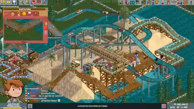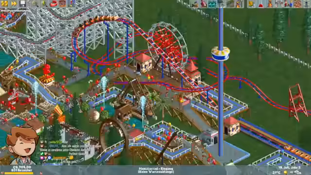 00:02:39Im neu geschaffenen Retro-Dienstag startet ein Experiment mit dem Spiel Rollercoaster Tycoon. Der Streamer plant, ein Plugin einzusetzen, das Subs als Parkbesucher im Spiel erscheinen lässt, und damit eine besondere Interaktion zwischen dem Chat und dem Gameplay zu schaffen. Zunächst wird ein Park aufgebaut, wobei ein Karussell und ein Geisterhaus als erste Attraktionen dienen. Es wird betont, dass der Stream das Spiel seit Jahren spielen wollte und es aus seiner Kindheit als absolutes Lieblingsspiel bezeichnet.