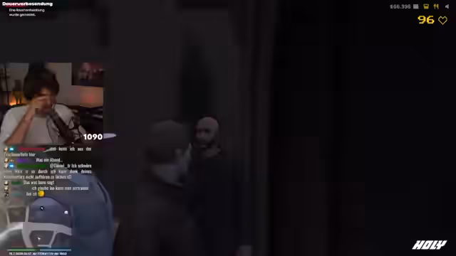 00:06:56Der Hauptfokus des Streams liegt auf dem bevorstehenden Knast-Roleplay. Es wird erklärt, dass die Gruppe aufgrund einer konflikthaften Situation, bei der sie sich als Priester ausgaben und auffällig auf jemanden zugegangen waren, verhaftet wurde. Streamer und Zuschauer äußern ihre Überraschung und Freude darüber, da dieser Handlungsstrang seit Monaten von der Community gewünscht wurde. Der Einstieg in das Roleplay wird mit der Ankunft der Mitspieler Leo und Tyler alias Taros vorbereitet.