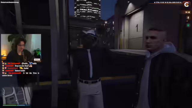 01:56:45Während einer kurzen Pause am Straßenrand bricht Tyler plötzlich zusammen. Der Streamer vermutet zunächst einen weiteren Scherz, stellt aber schnell fest, dass es sich um einen medizinischen Notfall handelt. Er und Zero leisten Erste Hilfe und rufen einen Krankenwagen, während Tyler über komische Nackenschmerzen klagt. Die Situation wird immer unübersichtlicher, und Geräusche, die Leo zufolge von einem Formwänder stammen könnten, verstärken die paranoide Atmosphäre.