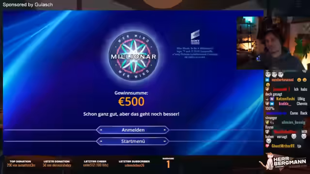 02:22:04Bei der finalen Frage im Millionär-Format, die eine halbe Million Euro wert ist, kommt es zu einer spannenden Abstimmung im Chat. Die Community ist gespalten über die richtige Antwort, die sich auf ein chemisches Element im menschlichen Körper bezieht. Nach intensiver Diskussion und dem Hinweis des Streamers auf mögliche Irreführungen, entscheiden sich die meisten Zuschauer für 'Sauerstoff'. Der Streamer loggt diese Antwort ein, stellt aber später fest, dass es sich um eine Falle gehandelt haben könnte und sie so die halbe Million Euro verlieren.
