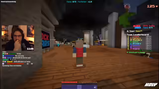 02:44:58Vor dem offiziellen Start des Turniers finden sich die Streamer zusammen, um sich zu motivieren. Es werden kämpferische Parolen wie 'Wir machen uns hier heute unsterblich' und 'Wir gewinnen das erste Klotz-Battle-Turnier' geäußert. Dabei wird klar, dass das Verlieren in diesem Turnier für die Teilnehmer absolut inakzeptabel ist. Die Teamnamen und -zugehörigkeiten werden bekannt gegeben: Papaplatte und Nooreax bilden 'Team Komet', während das Gegnerteam 'Team Kobet' heißt. Die Ankündigung erfolgt mit einem musikalischen Intro, um die richtige Stimmung für das bevorstehende Wettkampferlebnis zu erzeugen.
