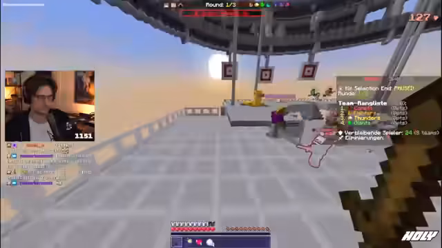 00:04:30Zu Streambeginn treten technische Herausforderungen in den Vordergrund. Der Streamer erhält ein unerwartetes Abo, das er fälschlicherweise sperrt, und muss dies rückgängig machen. Parallel beginnt die Vorbereitung auf das Turnier. Die Teammitglieder Bergmann und Noreax verbinden sich via Discord, um die Minecraft-Version 1.21.5 zu synchronisieren. Nach anfänglichen Verbindungsproblemen und einem fehlgeschlagenen Testkampf, bei dem die Schwertangriffe und Crit-Funktionen nicht einwandfrei funktionieren, nutzen sie den OG-Server Cytoxion für ein gemeinsames Warm-up. Ein erstes Spiel, das aus einem Jump'n'Run-Parcours mit anschließendem PvP-Kampf besteht, dient als Testlauf.