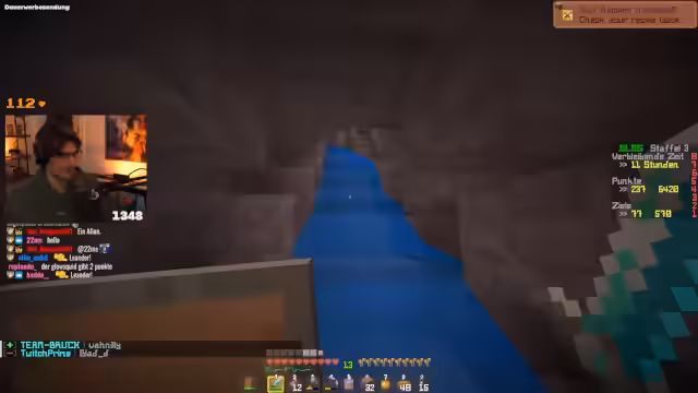 03:04:11Nachdem die Schere hergestellt wurde, geht es um das Sammeln von Custom Achievements. Der Streamer stellt fest, dass er eine giftige Kartoffel isst und dafür fünf Punkte erhält. Sie planen, ins Todeshaus zu gehen, da dort viele Diamanten vermutet werden, auch wenn der Chat davor warnt. Der Streamer erwähnt ein 'Team Privatsache' und betont, dass sie immer zusammen bleiben müssen. Trotz Gefahr durch Skelette und Creeper, findet der Streamer einen verzauberten Bogen, was ihm jedoch nur sehr wenig Schaden bringt. Das Ziel bleibt die Diamantensuche im Todeshaus.
